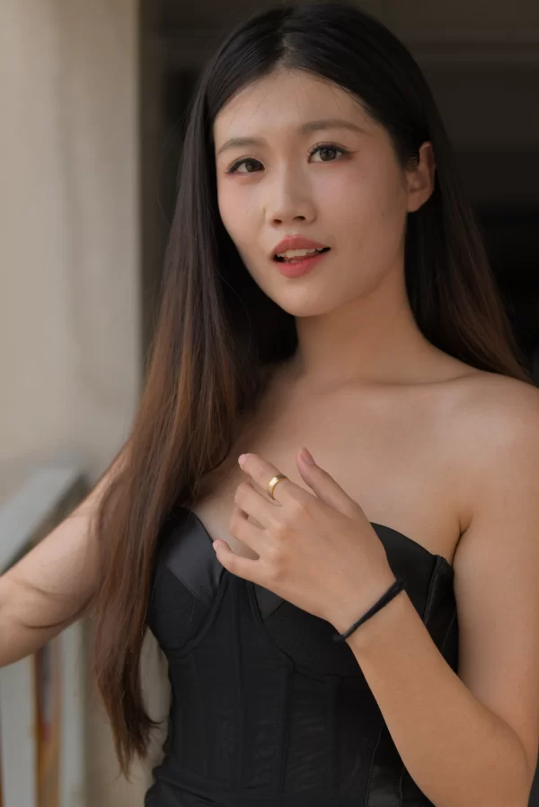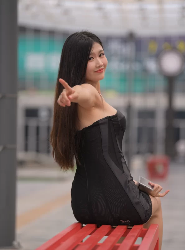 魔镜街拍 小诗02  [一始摄影作品]  Preference 黑色蕾丝鱼骨抹胸连衣裙